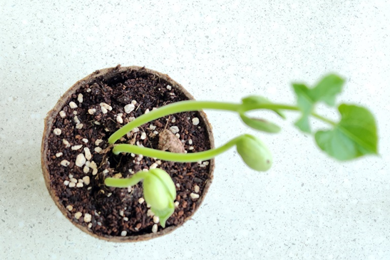 실내에서 싹틔운 강낭콩이 빛을 향하는 모습 : 발달지연
