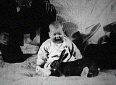 알버트 앞에 토끼 인형(중립 자극)을 놓아두고 아이가 토끼 인형을 잡으려고 할 때마다 옆 에서 금속 막대기로 큰 소리(공포를 일으키는 무조건자극)를 제시하자 알버트는 깜짝 놀라면서 울기 시작했다. 토끼 인형(중립 자극)과 금속 막대기의 큰 소리 (무조건자극)의 연합을 7번 하였더니 처음에는 무서워하지 않았던 토끼 인형을 무서워하며 잡으려고 하던 손을 움츠리는 반응을 하게 되었다.